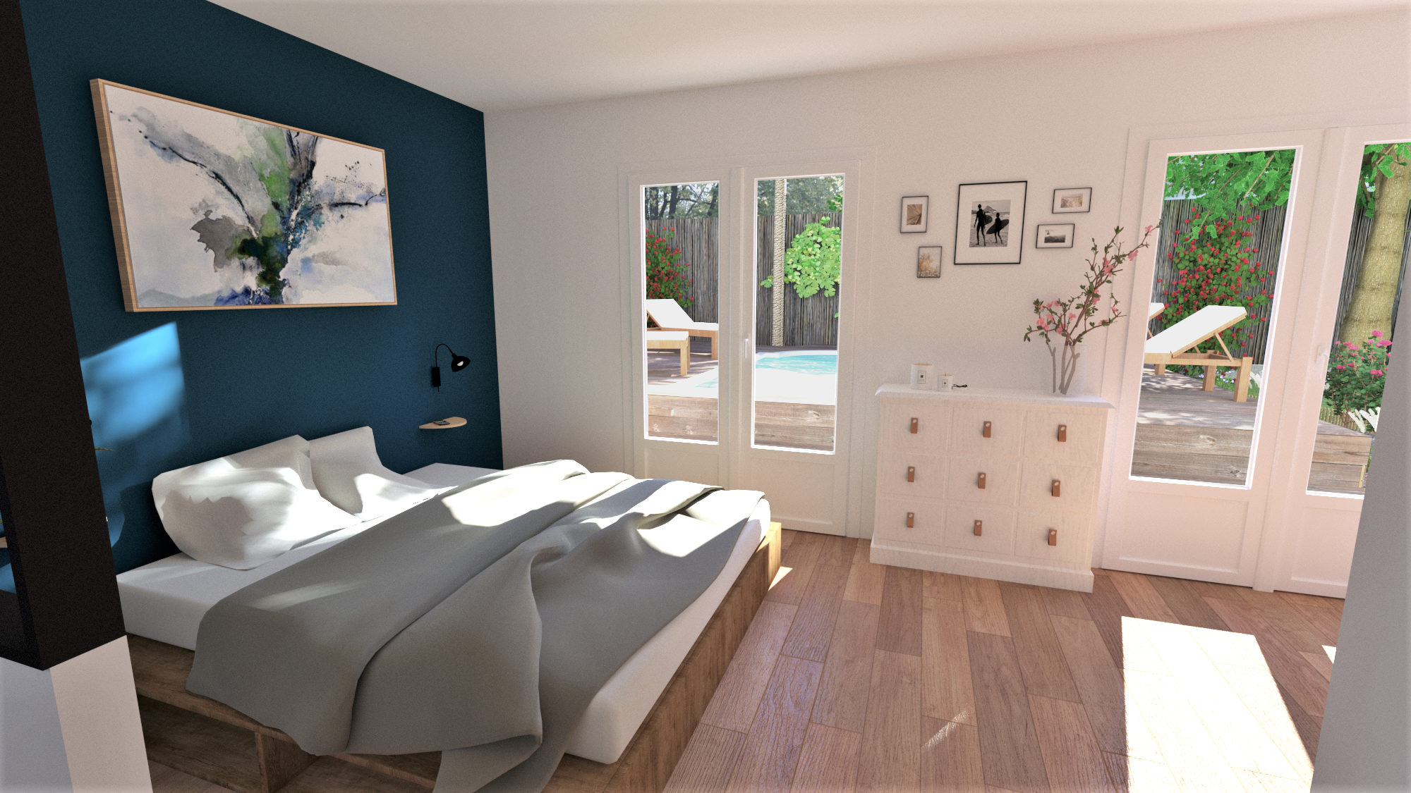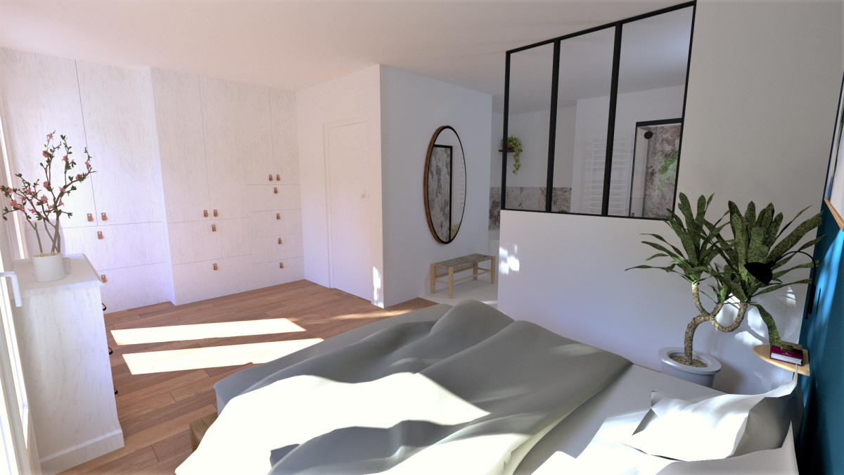 Création d’une grande suite parentale en lieu et place de 2 chambres et 2 salles de bains au rdc