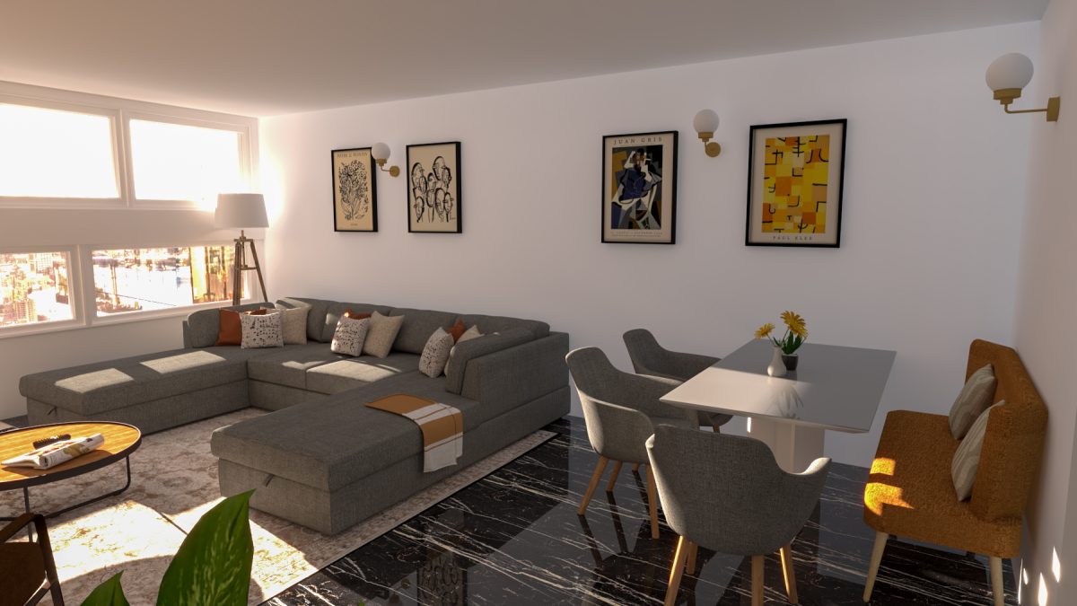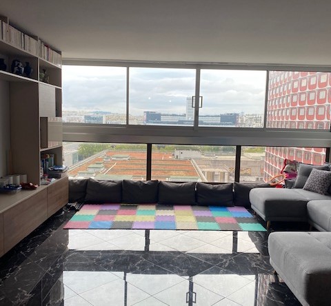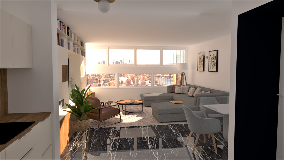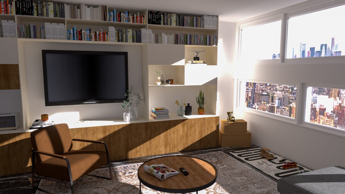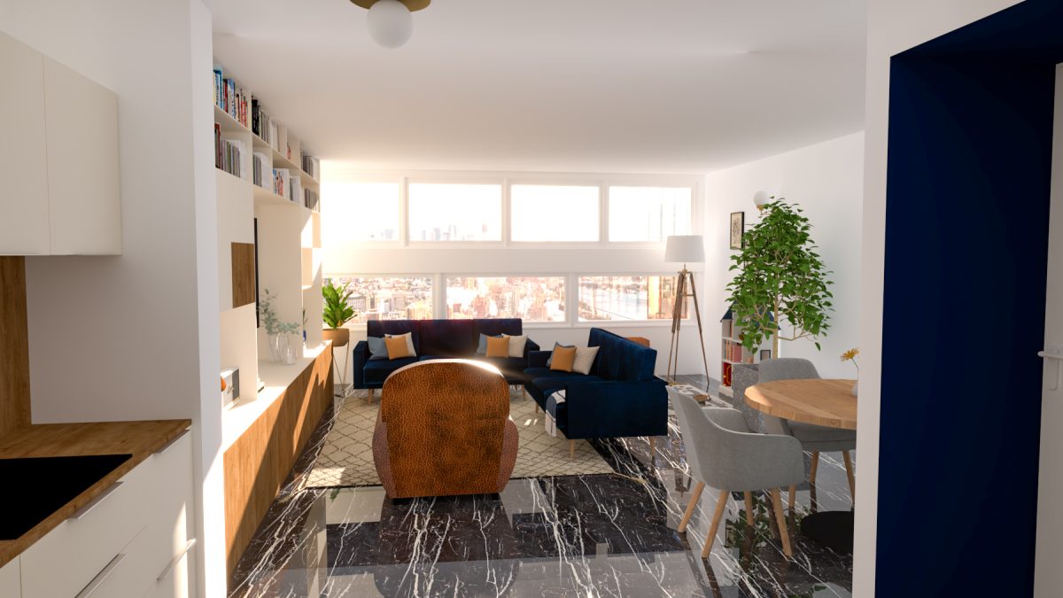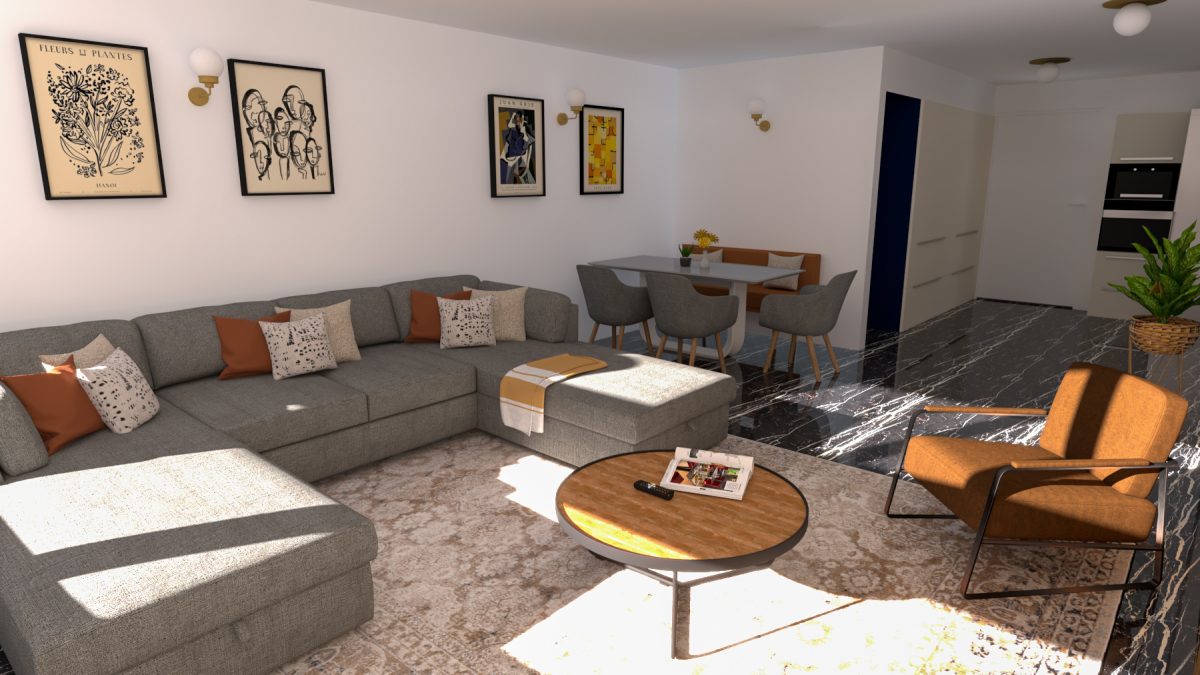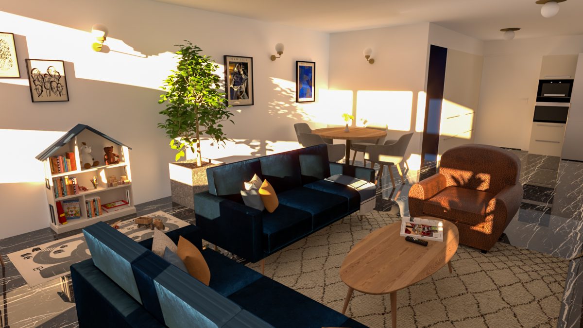 Nous avons accompagné ce couple dans la décoration de leur pièce de vie. Bien qu’ayant emménagé dans cet appartement il y a 4 ans, ce couple n’avait toujours pas trouvé comment optimiser l’espace séjour disponible et comment le décorer. Nous avons donc travaillé avec eux à distance sur plusieurs propositions pour apporter de la chaleur à cette pièce (jeu sur les matières, les luminaires, les couleurs,…) et pour délimiter au mieux les espaces (coin salon, coin salle à manger et petit coin jeu pour leur enfant de 4 ans).