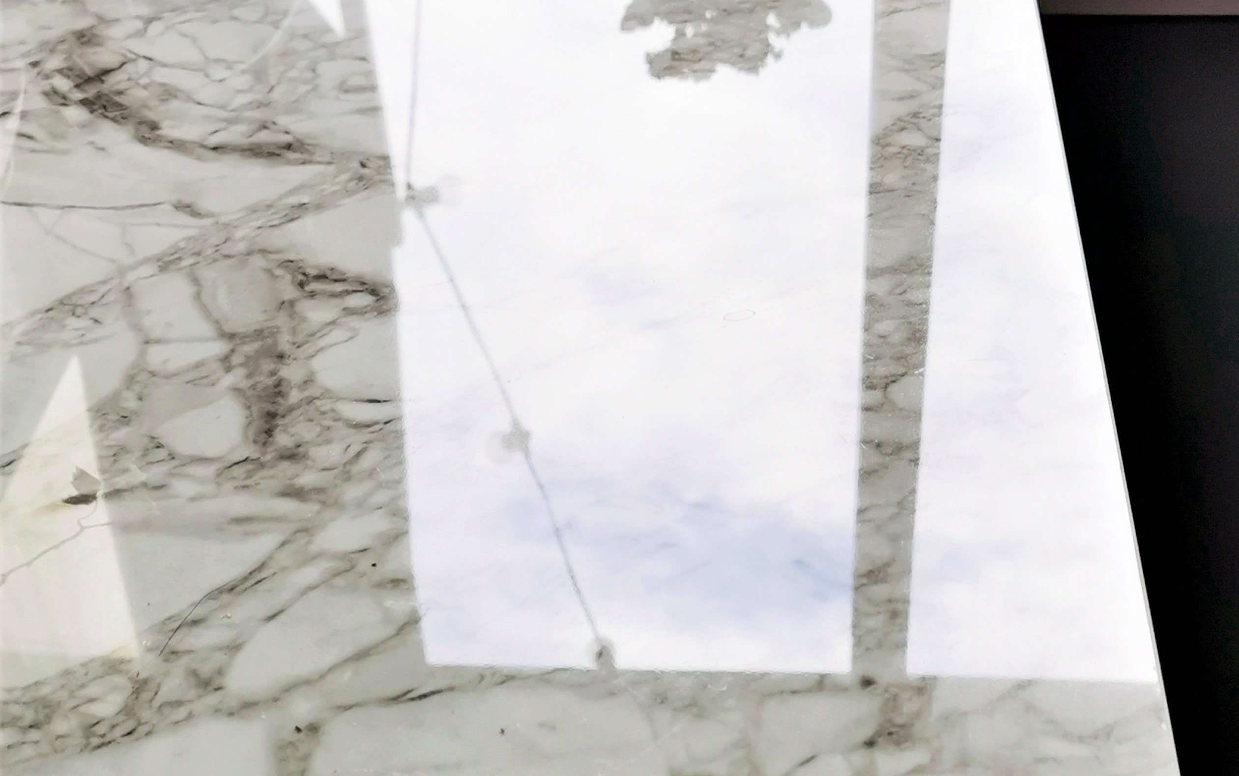 Le plan de travail a été choisi en Dekton, matériau particulièrement résistant à la chaleur, au froid et aux UV (orientation sud-ouest de la cuisine). Avec son veinage et son brillant, il apporte à coup sûr de la luminosité et du caractère.