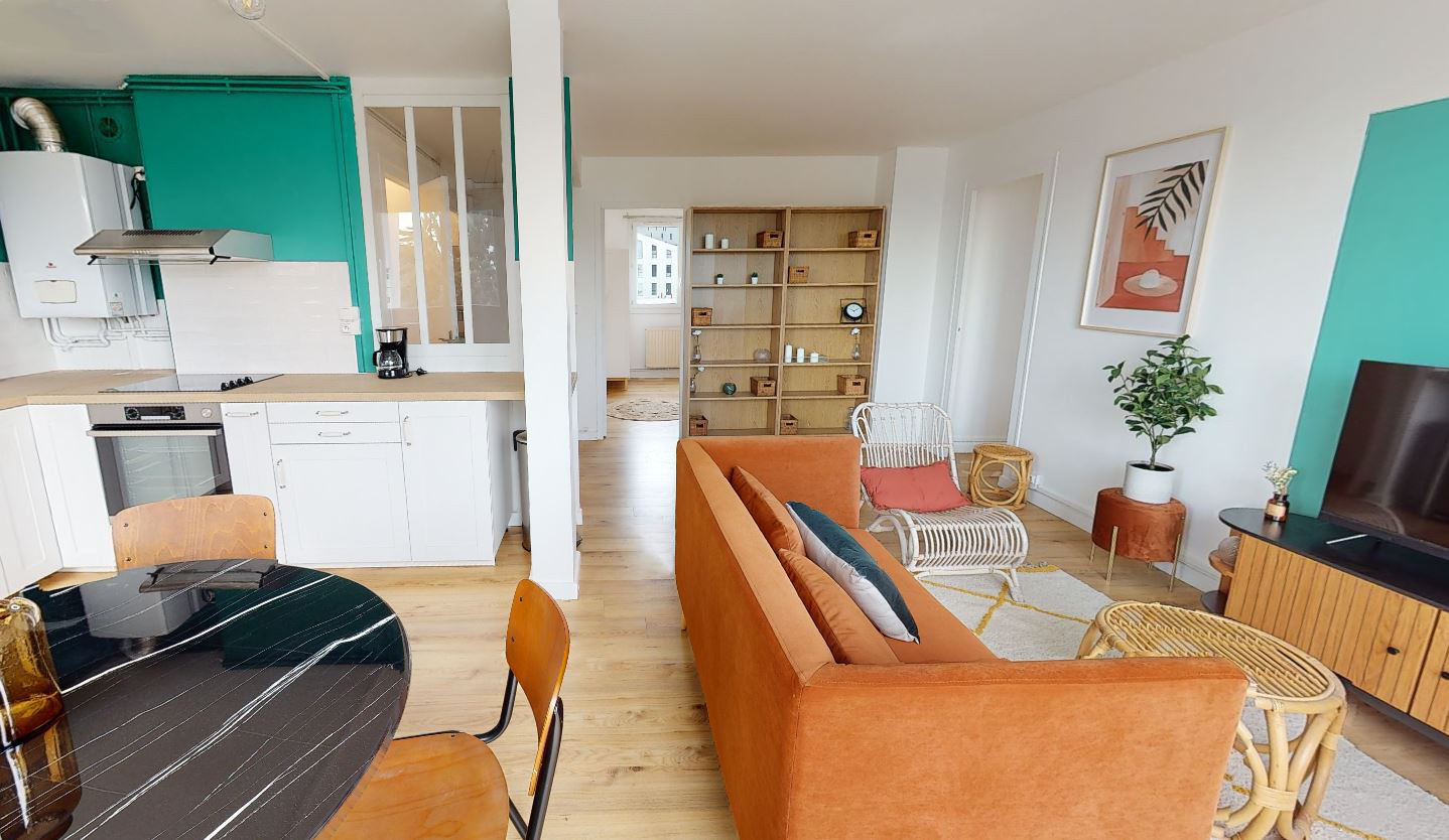 Rénovation de ce trois pièces de 68m2 en quatre pièces avec la création d’une chambre supplémentaire.